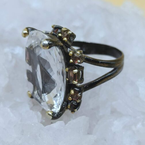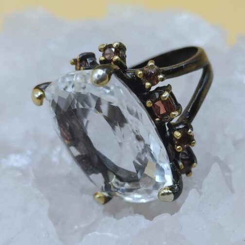 Гірський кришталь+ Гранат каблучка 012000 /Таїланд/