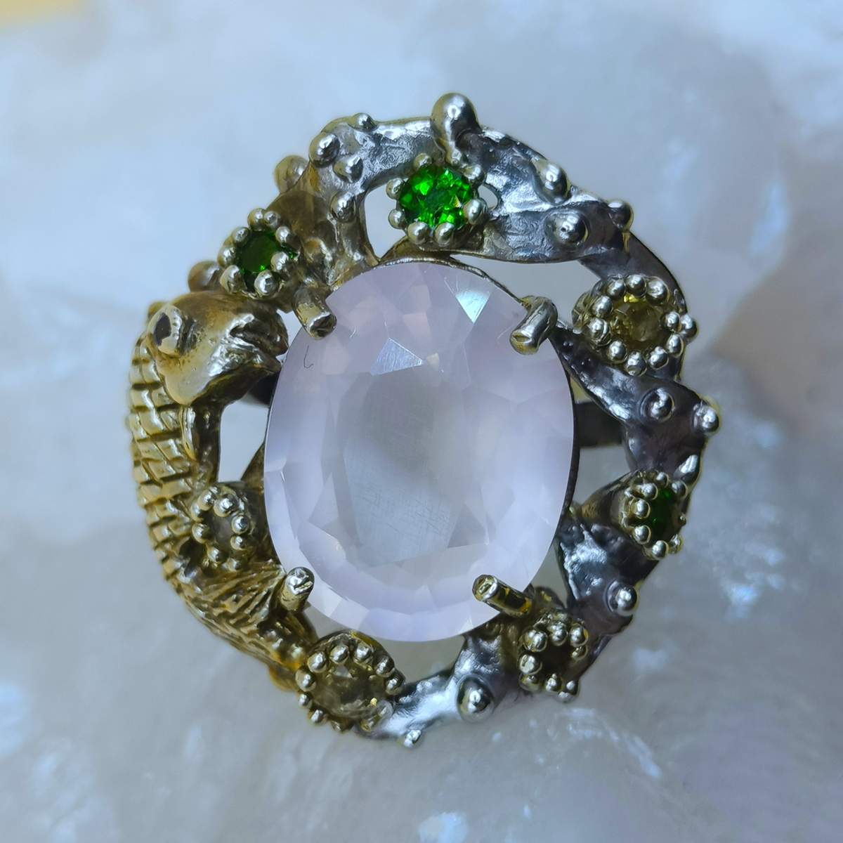 Чорне родієве покриття позолота 18 карат. Камені аметист+смарагд.