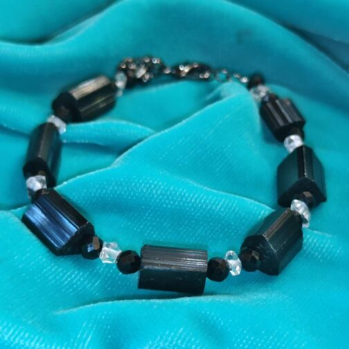 Браслет Агат Чорний +Турмалін +Херкімер 6мм 01100