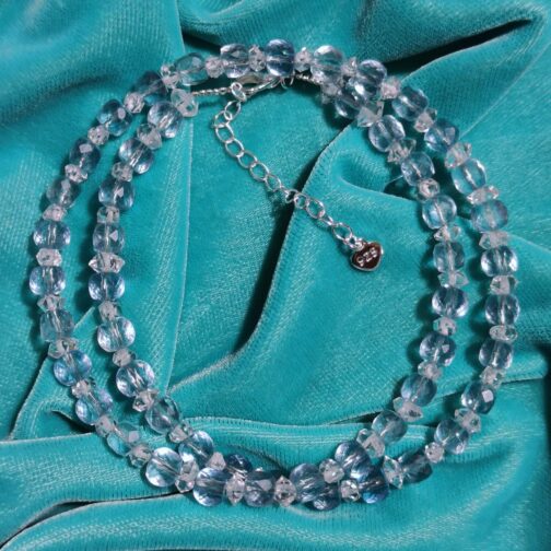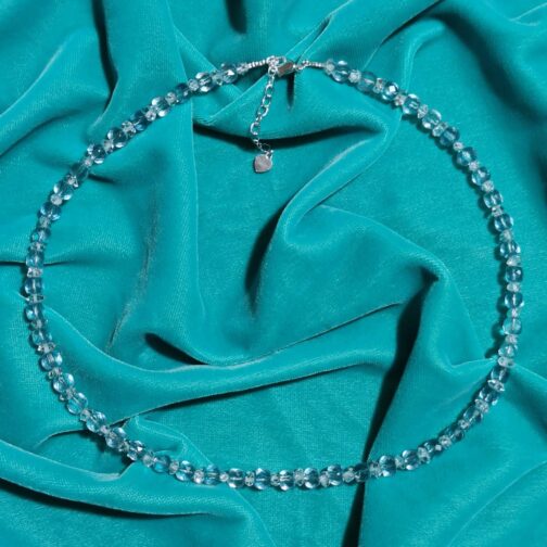 Для профілактики захворювань і зміцнення щитоподібної залози рекомендується носити блакитні топази на шиї у вигляді намиста. Завдяки високій частоті вібрацій блакитного кристала, прискорюється регенерація клітин шкіри й тканин, нормалізується обмін речовин — це сприяє запуску процесів омолодження організму.