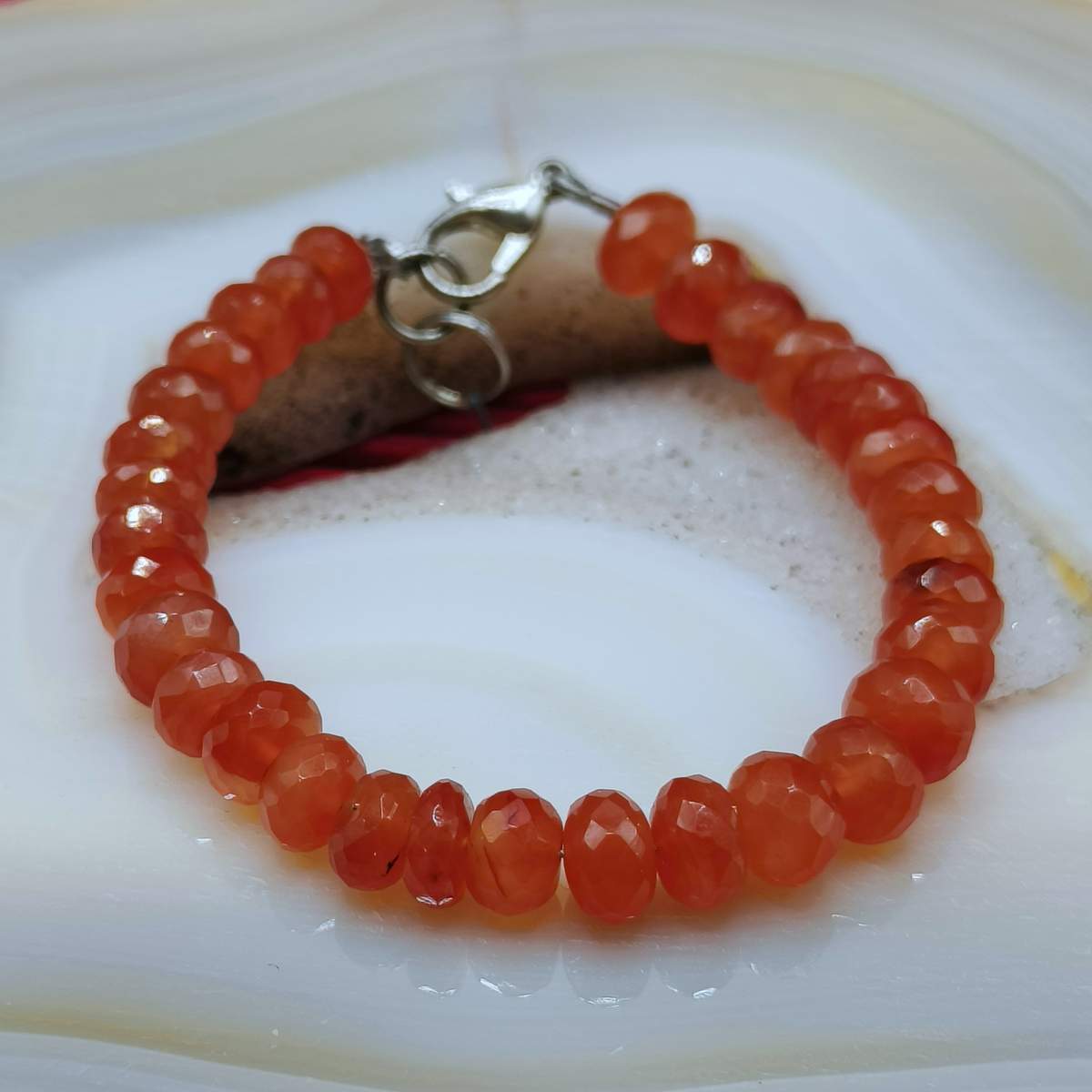 Сердолік – помаранчевий, червоно-жовтогарячого кольору халцедон. Халцедони складаються з тонких кристалів кварцу і мають волокнисту будову. Помаранчево-червоні та помаранчево-жовто-рожеві халцедони називають сердоліками. Його часто називають липневим самоцвітом. Він дарує своїм власникам кохання, подружнє щастя, здоров’я, сміливість. У Стародавньому Єгипті робилися із сердоліку побутові та ритуальні прикраси, які були присвячені богині Ісіді. Символ богині Ісіди нагадує за формою трилисту конюшину — її вирізали на сердоліку — на застібках, на перснях, і таким чином просили велику богиню, «мати богів», про заступництво і після смерті. Червоний сердолік вважали каменем мученика Варфоломія.