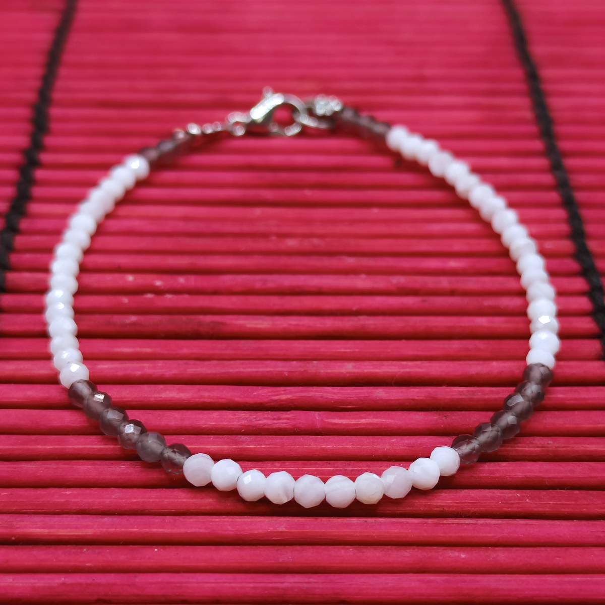 Браслет Місячний+Димчастий кварц грань 2мм 0550