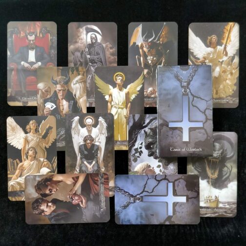 Оновлене «Таро Чорнокнижника» — це похмура і вражаюча колода, створена як універсальний інструмент для чаклунської роботи і діагностики подій. Натхненна образами чорнокнижництва, вона розкриває таємні сили через образи демонів, ангелів, планет і архетипічних фігур.